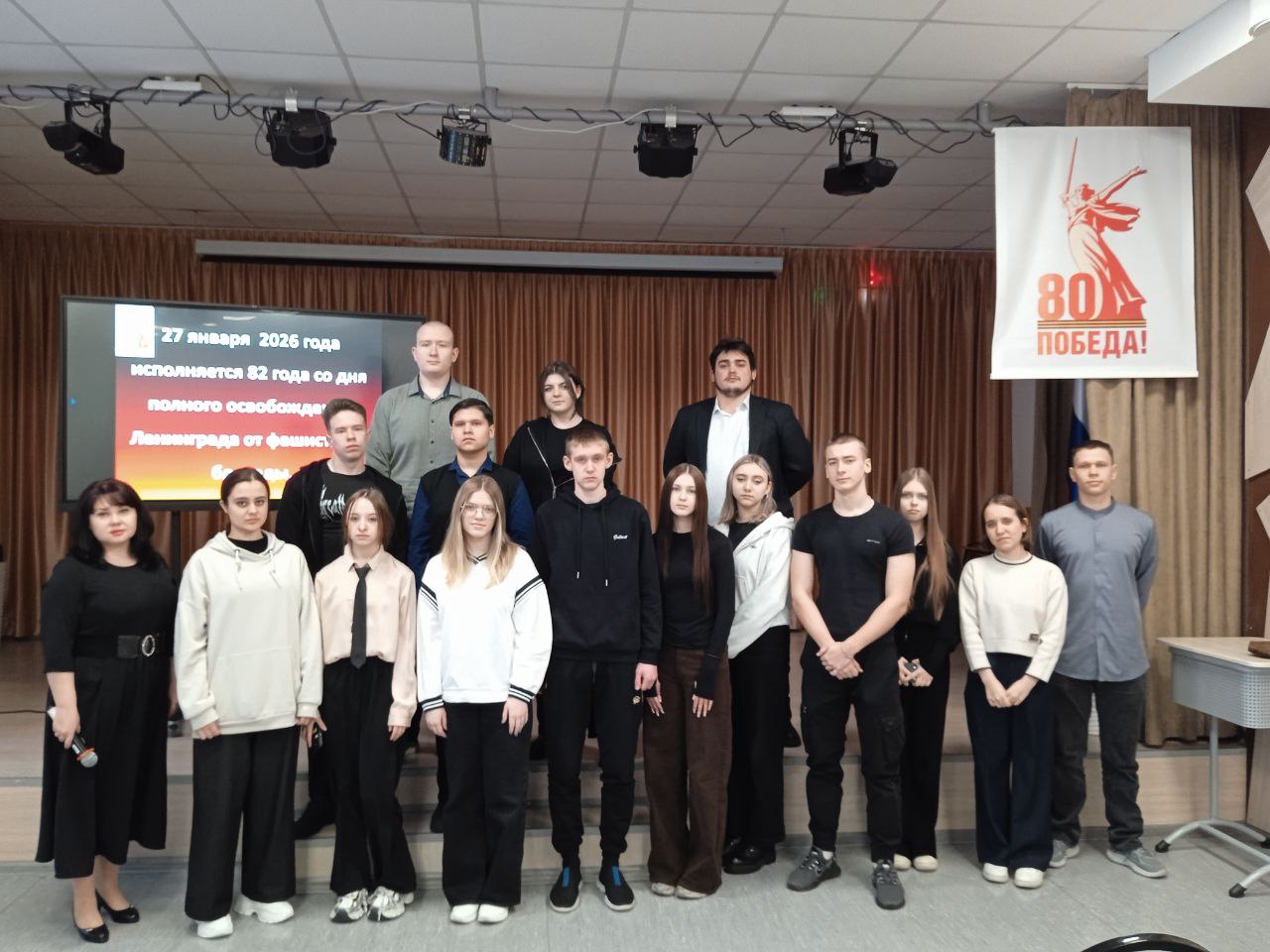 На мероприятии молодые люди узнали о самых героических страницах войны – о тяжёлых испытаниях, выпавших на долю жителей осаждённого города: о голоде и холоде, о детях и женщинах, работавших наравне с мужчинами на заводах, о защите и обороне Ленинграда советскими солдатами.